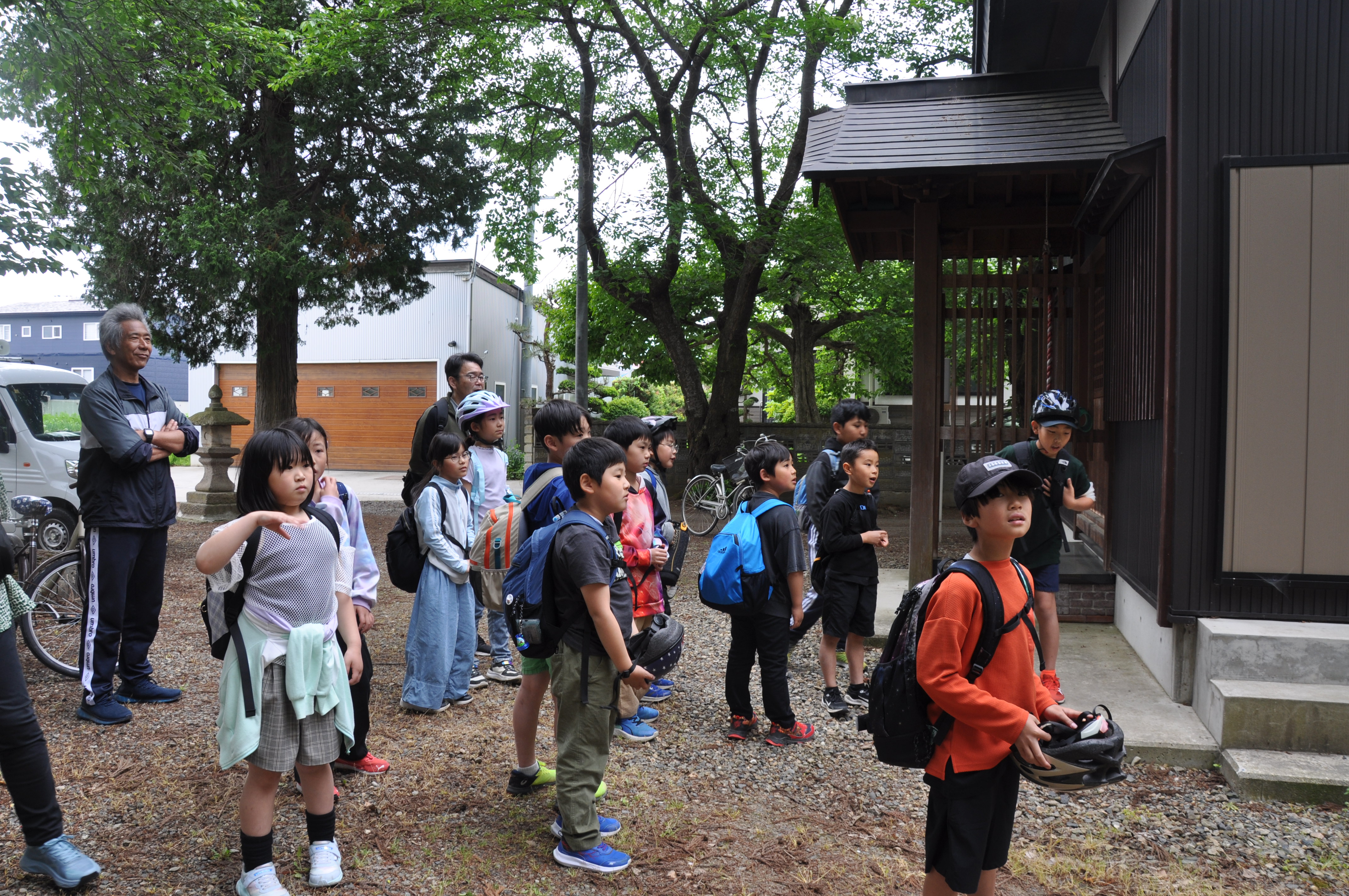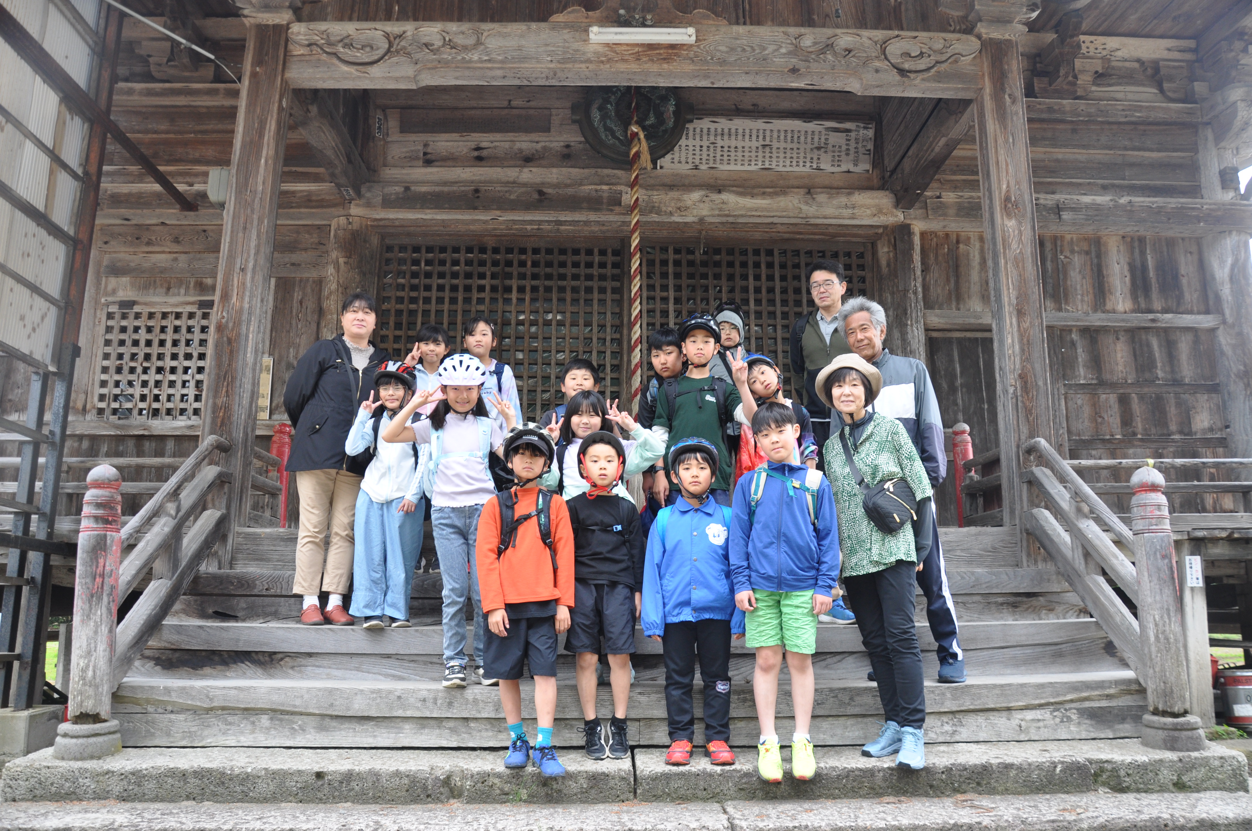 さらには、地区内の名所である塩野毘沙門堂や塩井神社、東町にある牛舎も見せていただき、子どもたちはまだ知らない地元塩井の魅力を再発見していました。